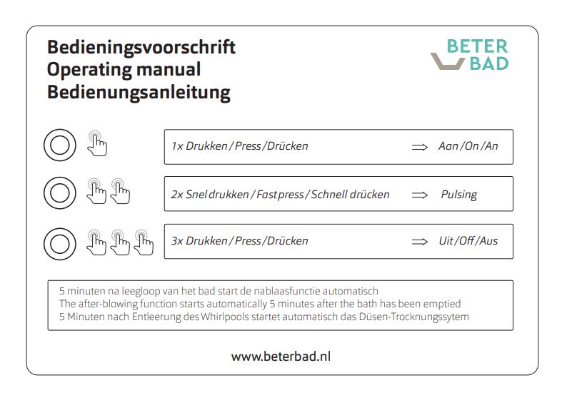 In de Wellness Suite vindt u in de badkamer een bubbelbad. Het bubbelbad dient op de volgende manier te worden gebruikt: