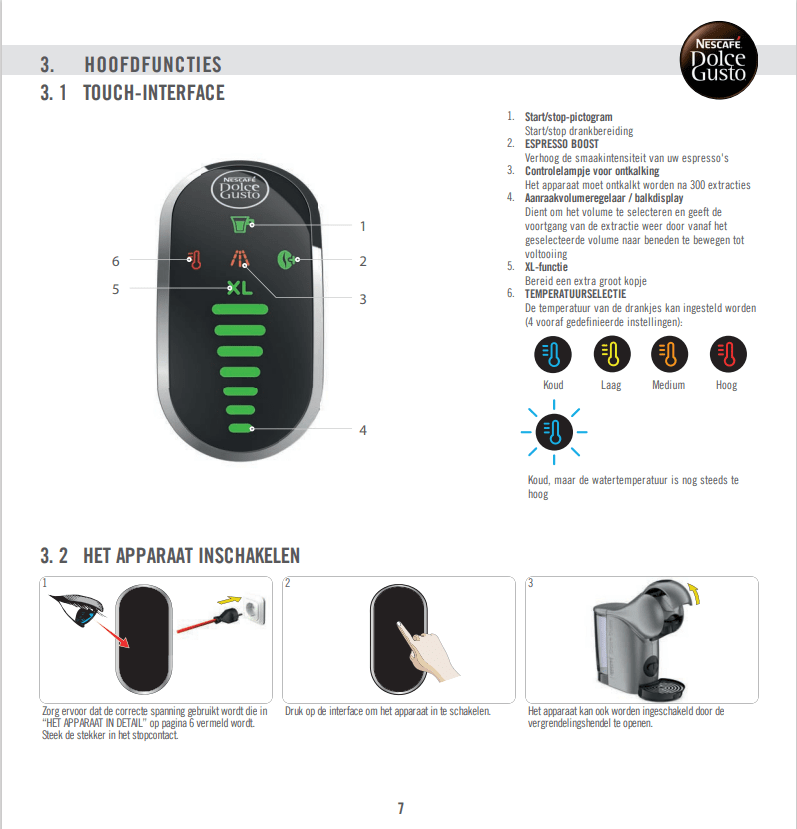 Wilt u de verlichting aan of uit hebben! Druk dan op de verlichting schakelaar.