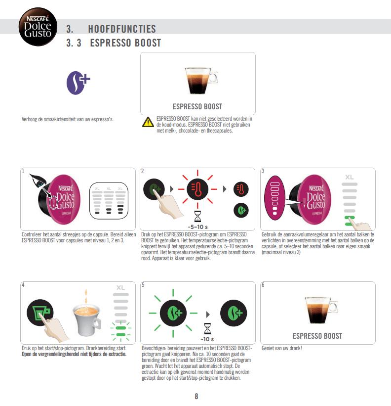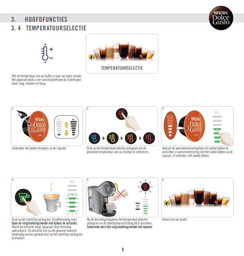 Stel de temperatuur in tot max 75 graden, met de pijltoetsen.